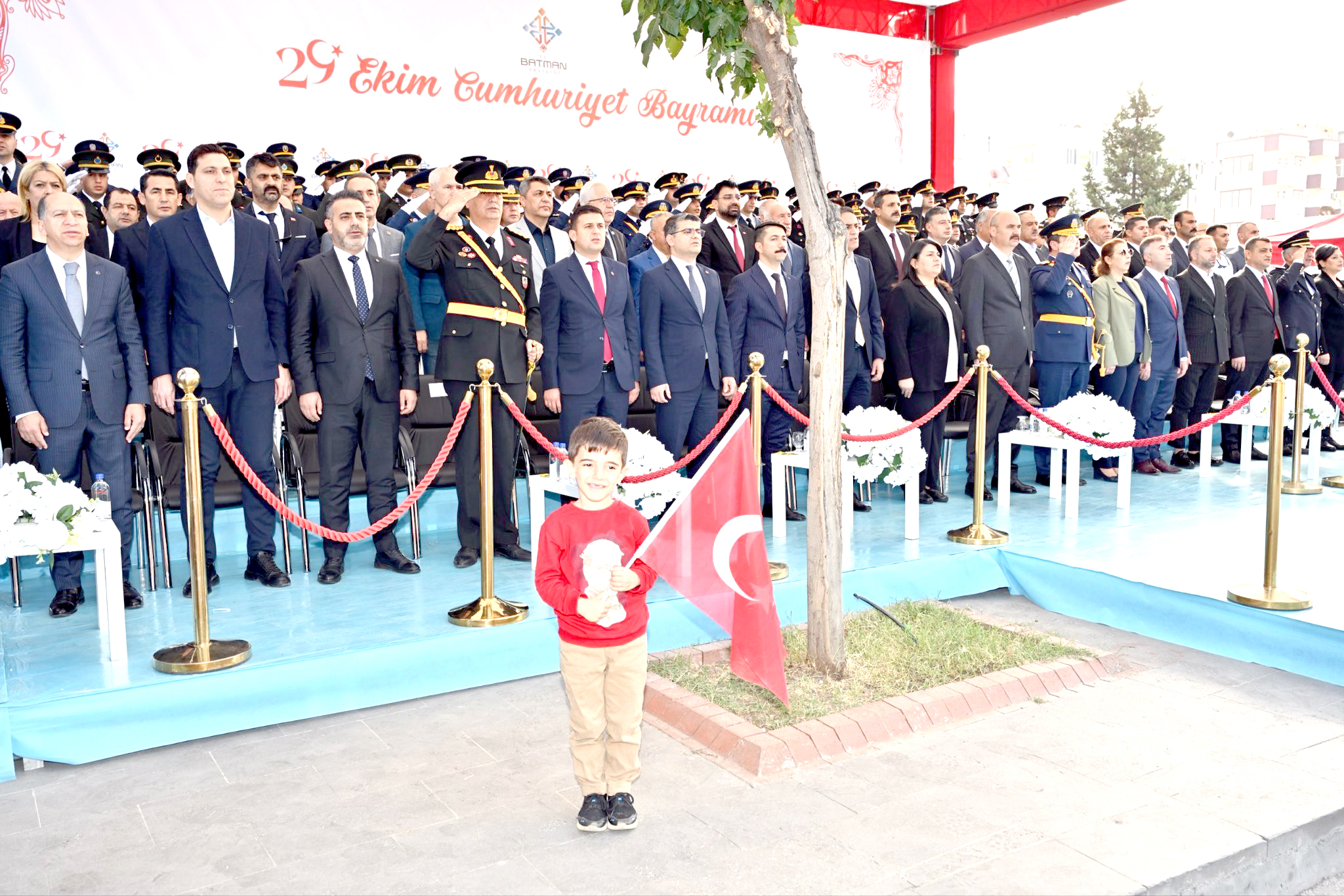 Batman’da 29 Ekim Cumhuriyet Bayramı, 102. yıl dönümü coşkusu ile kutlandı. Törenler Atatürk Anıtı’na çelenk sunulmasıyla başladı. Sabah saat 09.30’da Vali ve Belediye Başkan Vekili Ekrem Canalp, protokol üyelerinin tebriklerini kabul etti.