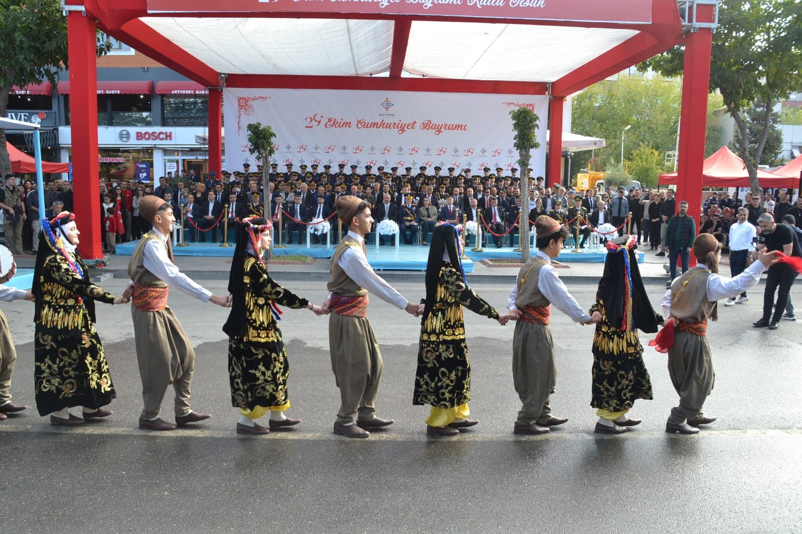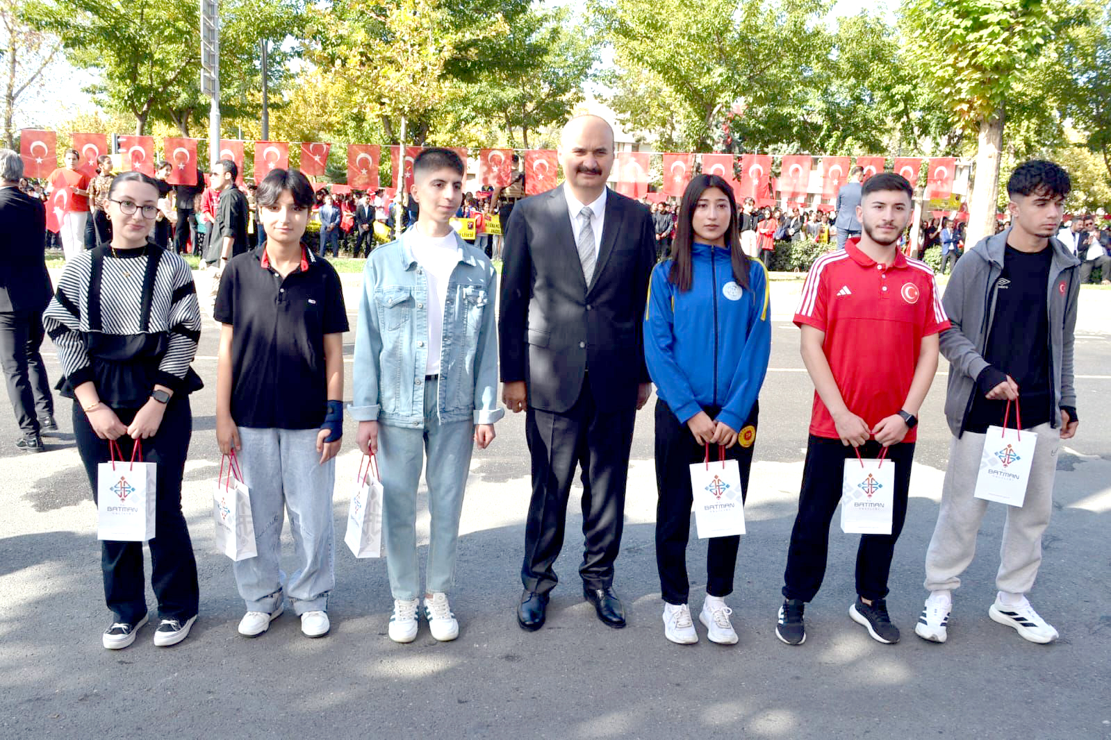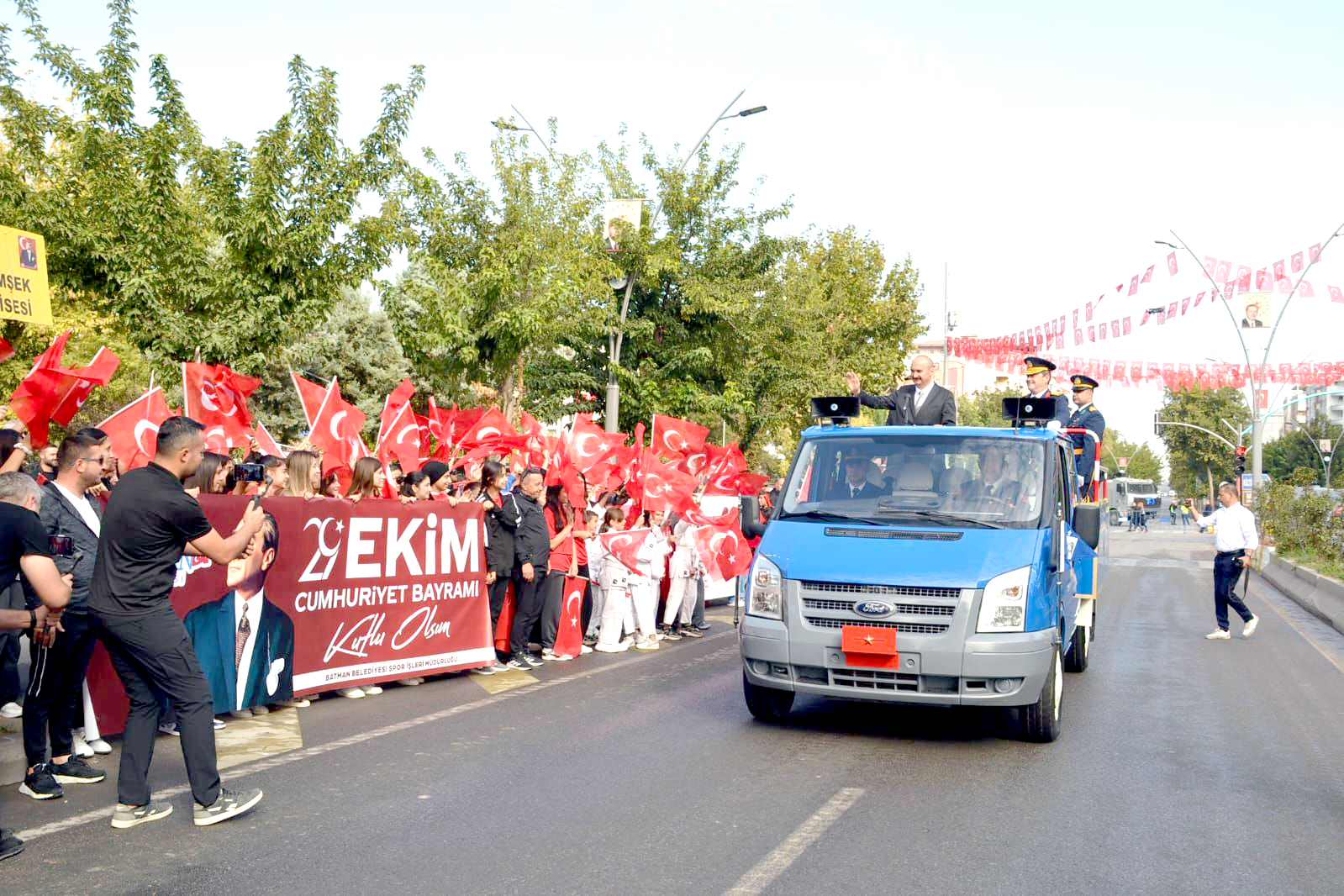 Saat 10.00’da başlayan resmi geçit töreninde Vali Canalp ve Garnizon Komutanı Tuğgeneral Mehmet Ali Koç halkı selamladı. Törene; Cumhuriyet Başsavcısı Enver Eroğlu, Batman Üniversitesi Rektörü Prof. Dr. İdris Demir, vali yardımcıları, güvenlik yetkilileri, kurum temsilcileri, siyasi parti ve STK temsilcileri ile gaziler ve şehit yakınları katıldı.