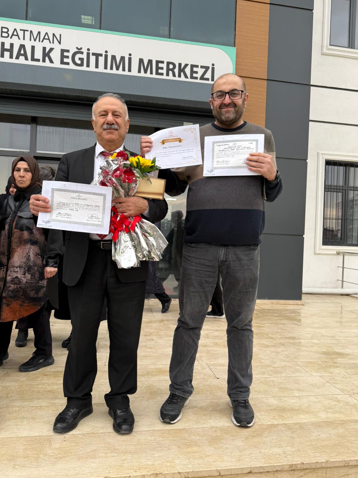Kaya, yıllardır hatıra olarak sakladığı belge ve diplomayı Kalkan’a gösterdiğinde salonda duygu dolu anlar yaşandı. Süleyman Kaya, Kalkan’dan hem okul müdürü olduğu dönemde hem de öğretmenlik hayatı boyunca çok şey öğrendiğini ifade etti. Törende ayrıca özverili çalışmaları dolayısıyla Süleyman Kaya’ya teşekkür belgesi takdim edildi. Kaya, başta Hayat Boyu Öğrenme Genel Müdür Yardımcısı Mahmut Kurtaran olmak üzere Batman İl Milli Eğitim Müdürlüğü personeline teşekkür etti.