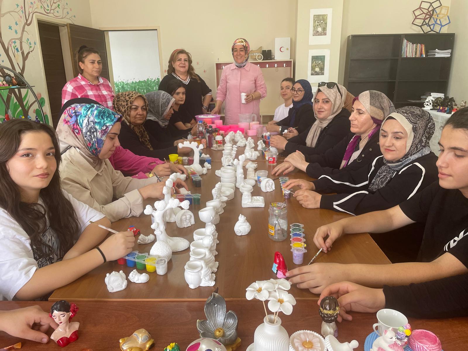 Batman Aile ve Sosyal Hizmetler İl Müdürlüğü’ne bağlı 19 Mayıs ÇATOM’da “Dekoratif El Sanatları – Kokulu Taş Biblo Yapımı” kursu açıldı. Yaklaşık 4 ay süren kursa 20 kadın kursiyer katılıyor. Günlük 6 saat süren eğitimde kursiyerler, taş tozundan yapılan yaklaşık 100 farklı hediyelik eşya üretiyor.