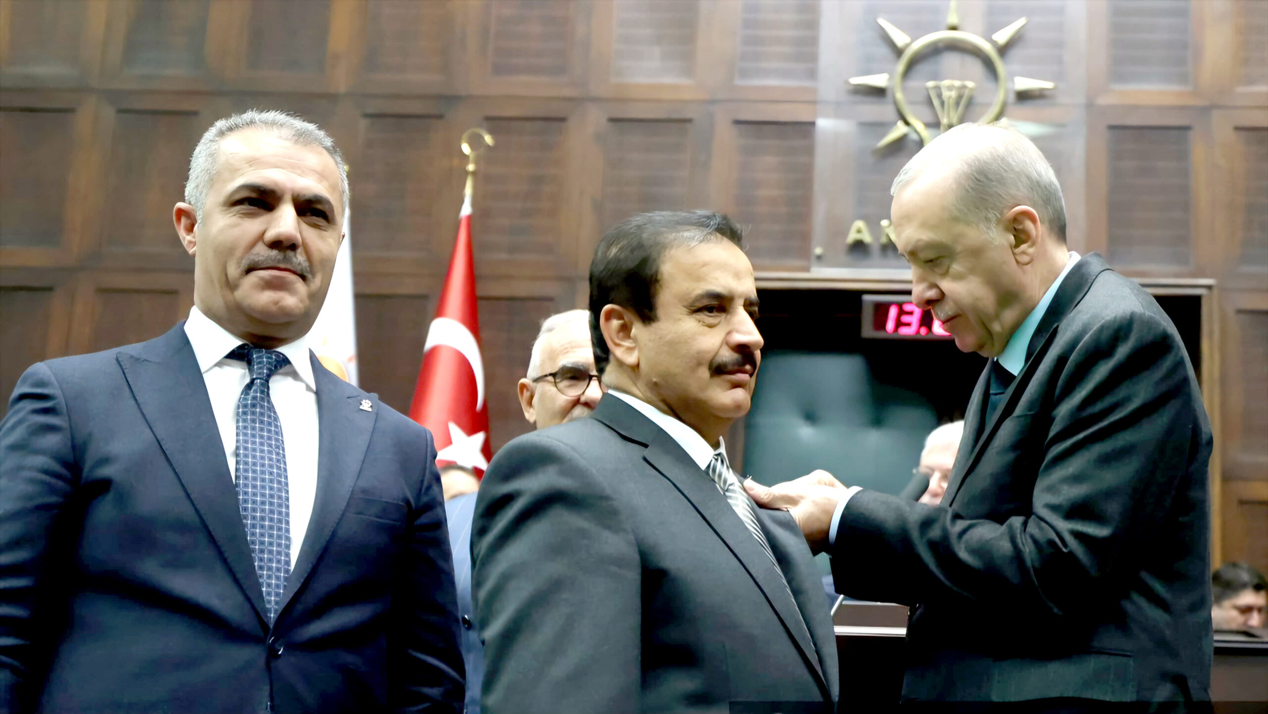 Cumhurbaşkanı ve AK Parti Genel Başkanı Recep Tayyip Erdoğan, partisinin TBMM Grup Toplantısı’nda, CHP’den AK Parti’ye katılan Hasankeyf Belediye Başkanı Hamit Tutuş’a rozet taktı.