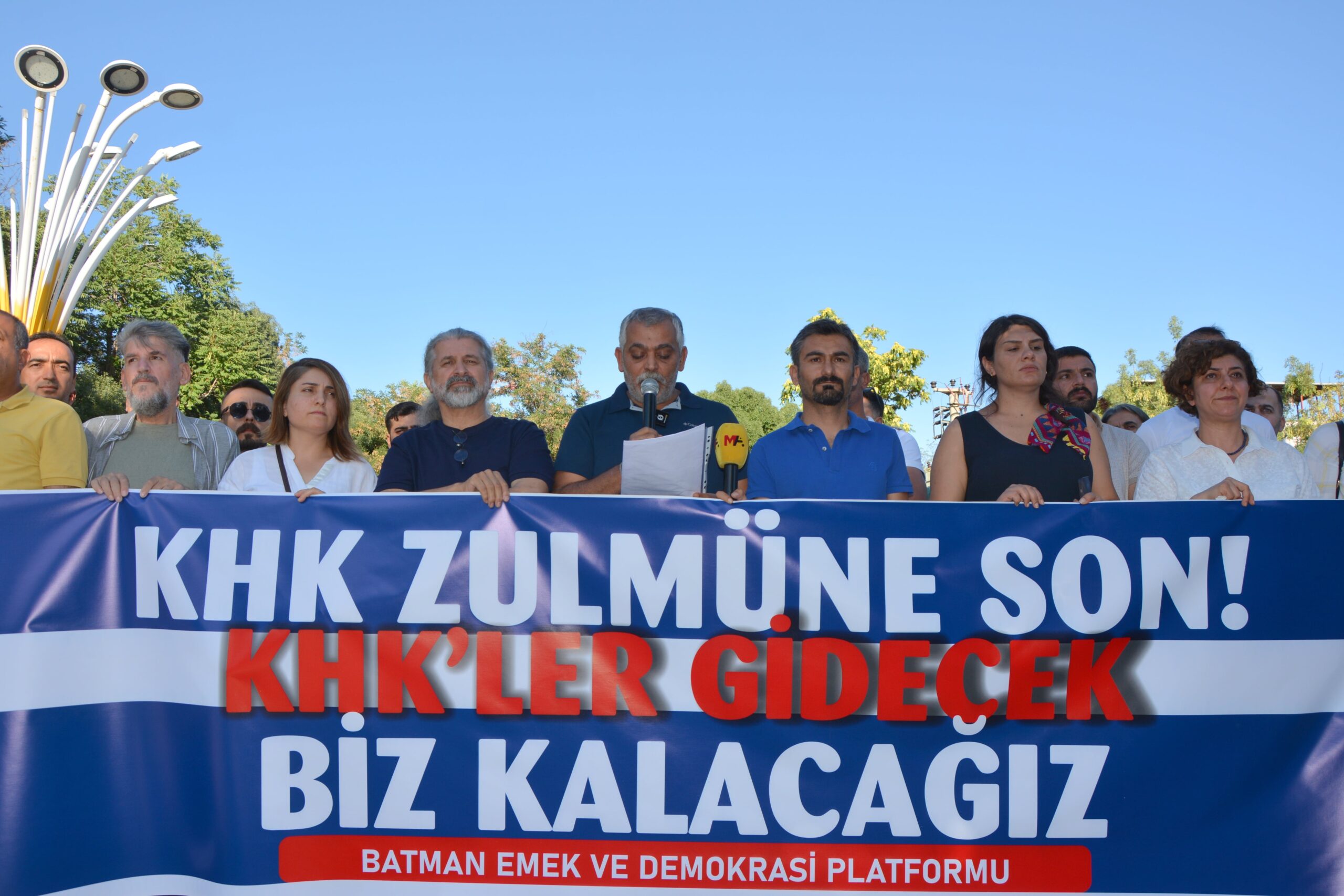 Batman Emek ve Demokrasi Platformu, Yılmaz Güney Sergi Alanı’nda “KESK’li İhraçlar Onurumuzdur, KHK Zulmüne Son” şiarıyla basın açıklaması düzenledi. Açıklamayı platform adına SES Batman Şube Eş Başkanı Cihan Tüzün okudu.